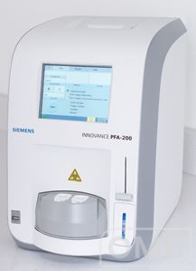 Система PFA-200 компании Siemens (Германия) позволяет в течение 3-8 минут выявить дисфункцию тромбоцитов в цельной крови без процесса пробоподготовки. Уникальный компактный анализатор моделирует процесс адгезии и агрегации тромбоцитов возникающих в повреждённом сосуде