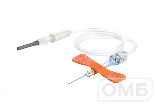 Цветовая кодировка "крылышек" соответствует диаметру иглы: оранжевый цвет - 0,5 мм.
