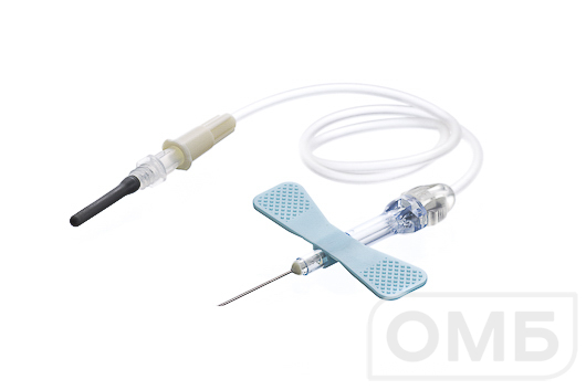 Цветовая кодировка "крылышек" соответствует диаметру иглы: голубой цвет - 0,6 мм.