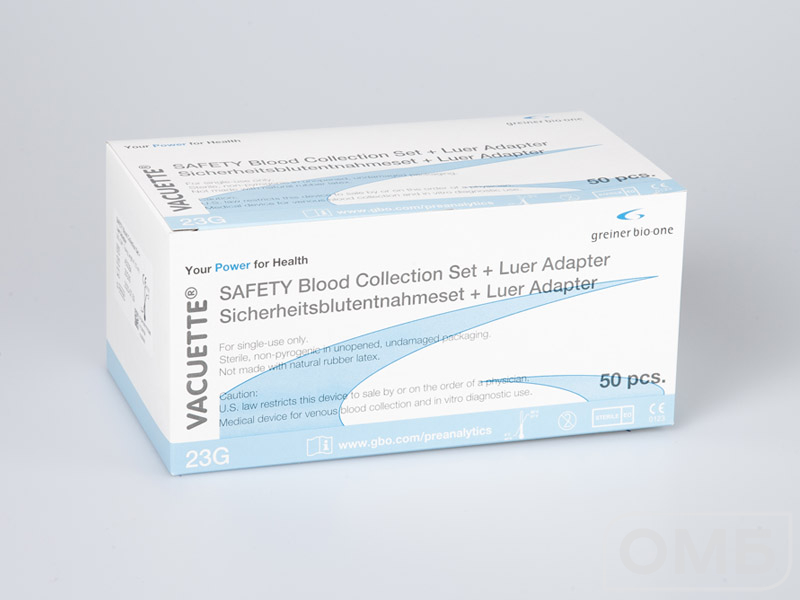 Игла-бабочка с луэр-адаптером ("SAFETY" 23Gх3/4" 10 см, голубая, 0,6х19 мм) 450084