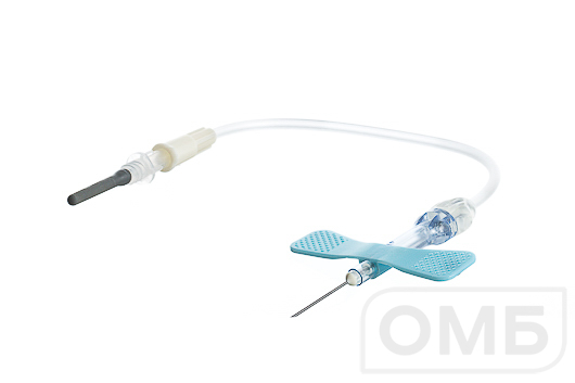 Цветовая кодировка "крылышек" соответствует диаметру иглы: голубой цвет - 0,6 мм.