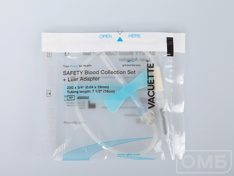 Игла-бабочка с луэр-адаптером ("SAFETY" 23Gх3/4" 19 см, голубая, 0,6х19 мм) 450082