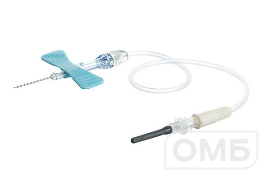 Цветовая кодировка "крылышек" соответствует диаметру иглы: голубой цвет - 0,6 мм.