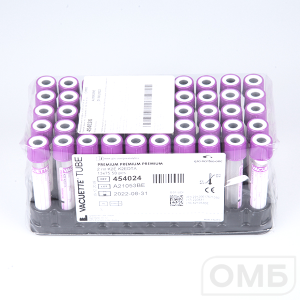 Пробирки вакуумные (2 мл, 13х75 мм, "VACUETTE" с К2 ЭДТА для гематологии, "PREMIUM") 454024