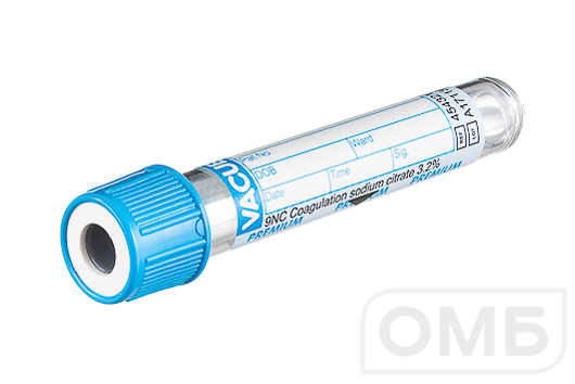 Пробирки VACUETTE® для исследования системы гемостаза содержат 3,2% забуференный раствор цитрата натрия. Соотношение кровь:реагент в пробе 9:1. Двойная стенка защищает вакуум и раствор цитрата от испарения. Треугольная метка наполнения позволяет максимально точно взять нужный объем образца.