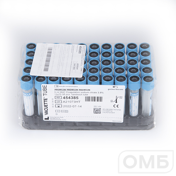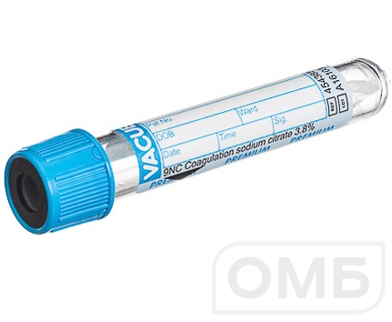 Пробирки вакуумные (3 мл, 13х75 мм,"VACUETTE" с натрия цитратом 3,8%, с двойными стенками, для гемостаза, "PREMIUM") 454385