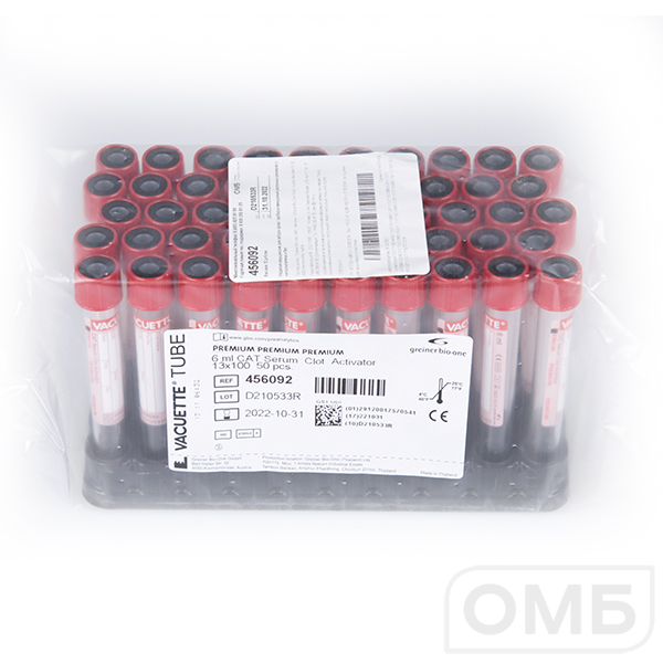 Пробирки вакуумные (6 мл, 13х100 мм, "VACUETTE", для сыворотки, "PREMIUM") 456092