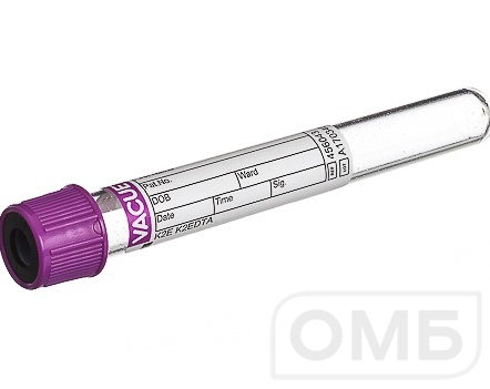 Цвет крышки вакуумной пробирки для взятия венозной крови : Фиолетовый