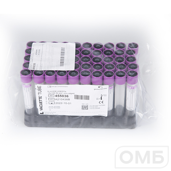 Пробирки вакуумные "VACUETTE" с К2 ЭДТА для гематологии 9 мл 16х100 мм, без резьбы