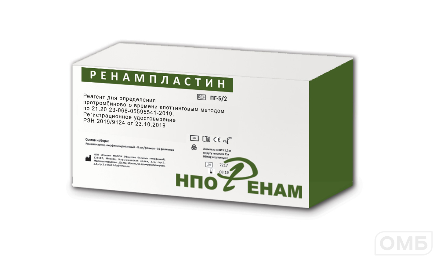 Реагент для определения протромбинового времени клоттинговым методом (Ренампластин) по ТУ 21.20.23-066-05595541-2019, вариант исполнения 2, в составе: 1. Ренампластин, жидкий, номер по каталогу производителя - ПГ-5/2 - 5,0 мл во флаконе - 10 флаконов ПГ-5/2