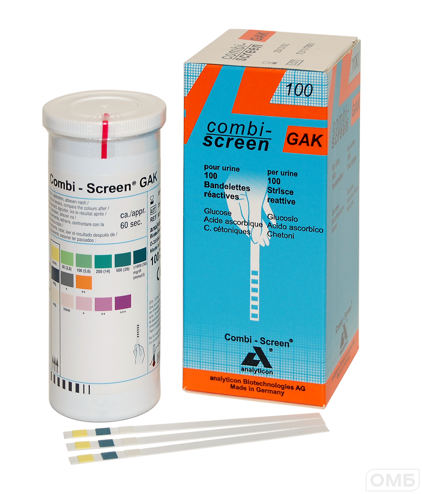 Тест-полоски для определения трех параметров: Combi-Screen GAK (для анализа мочи)