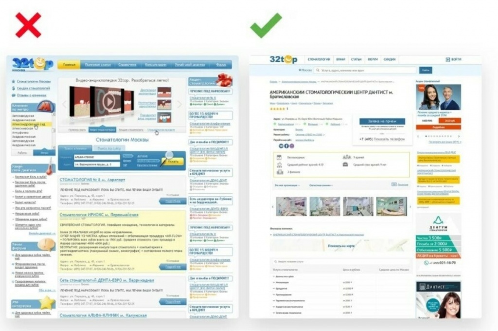 Одна из самых критичных ошибок, часто встречающаяся на сайтах медицинской тематики — невозможность пользования им с мобильных устройств. Скорее всего, сайт сделали 3-8 лет назад и с тех пор ничего не меняли. Сайт обязательно должен быть адаптивным, т.е. подстраиваться под любое устройство, с которого его открыли. Речь не только о смартфонах и планшетах — многие сайты некорректно отображаются даже на разных мониторах.